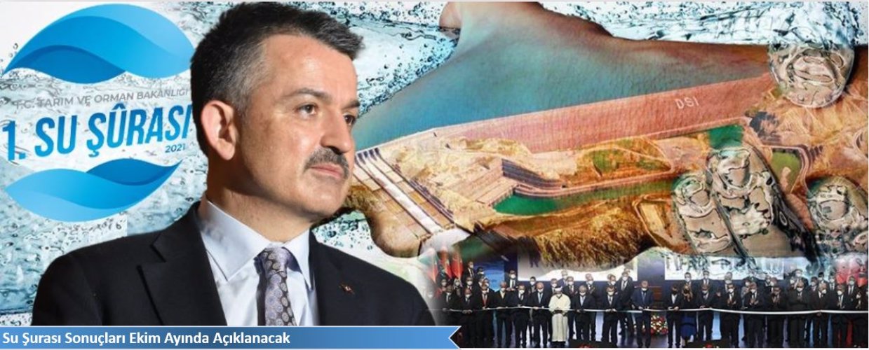 Tarım ve Orman Bakanı Dr. Bekir Pakdemirli: “İklim değişikliğinin etkisi altında olan ülkemizde suyun kıymetini her geçen gün daha iyi anlıyoruz. Bu kapsamda 6 aydır tüm paydaşlarımızın katılımıyla gerçekleştirdiğimiz Su Şurası çalışmalarını tamamlayıp hızla aksiyon alacağız.”